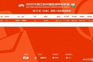 体育资讯9月6日讯 官方消息,贾志亮将担任中甲第13轮补赛大连鲲城vs定南赣联的主裁判。